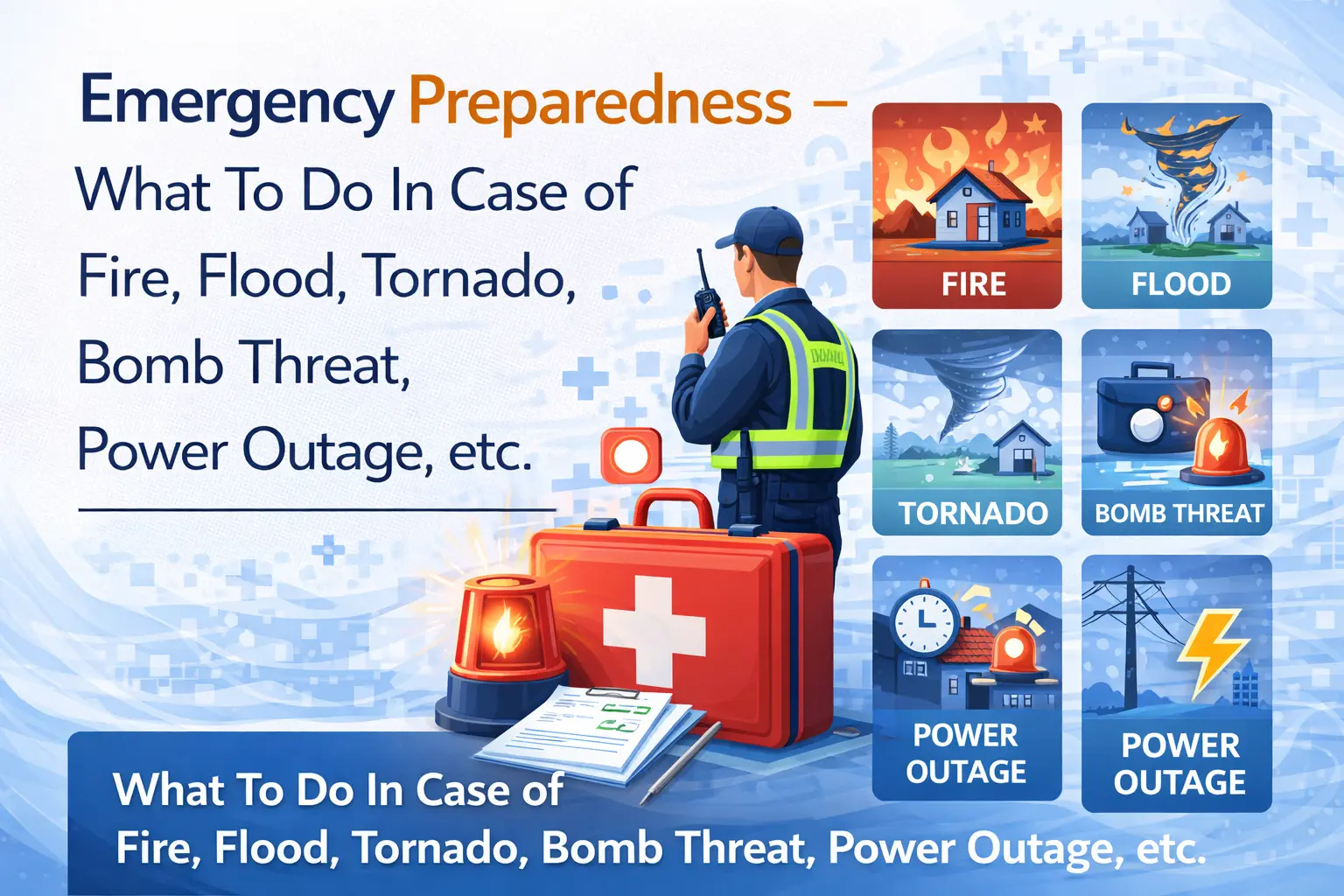 Emergency Preparedness – What To Do In Case of Fire, Flood, Tornado, Bomb Threat, Power Outage, etc.